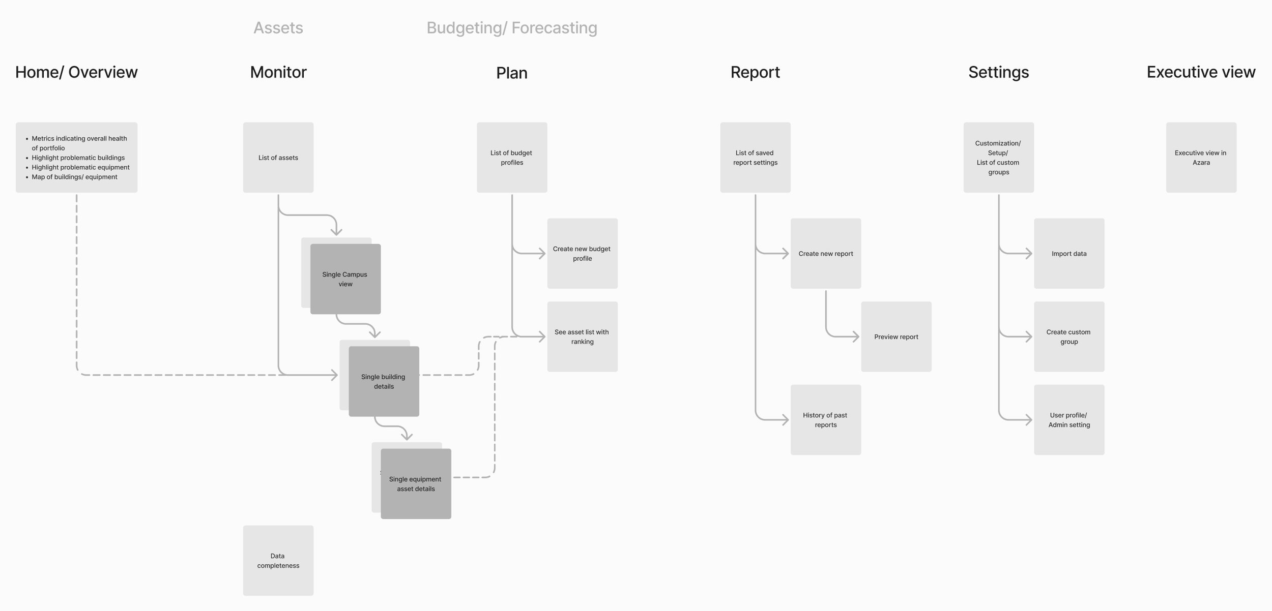 I was tasked with merging two existing B2B web applications into a new, unified solution to streamline workflows. Both tools managed commercial real estate asset lifecycles: one analyzed which equipment assets (ex. HVACs, heat pumps) to replace, and the other prioritized replacements within client budget limitations.